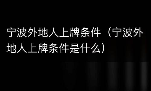 宁波外地人上牌条件(宁波外地人上牌条件是什么)