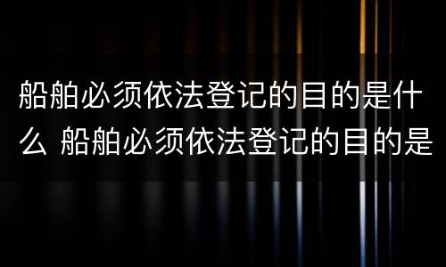 船舶必须依法登记的目的是什么 船舶必须依法登记的目的是什么意思
