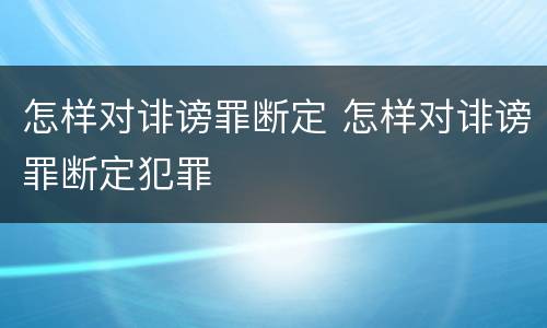 怎样对诽谤罪断定 怎样对诽谤罪断定犯罪