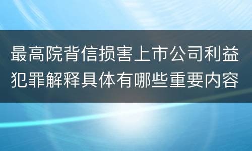 最高院背信损害上市公司利益犯罪解释具体有哪些重要内容