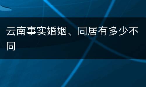 您好,事实婚姻与同居关系除了在概念方面的不同点之外,主要还有以下几方面的区别,律师为您解答:(1)两者的构成要件不同。依据各自的概念,我们可以知道,事实婚姻在我国目前审判实际中的发生、认可,是受到