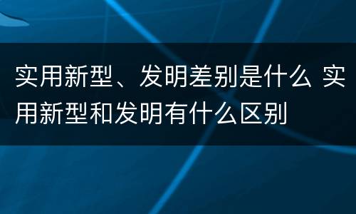 实用新型、发明差别是什么 实用新型和发明有什么区别