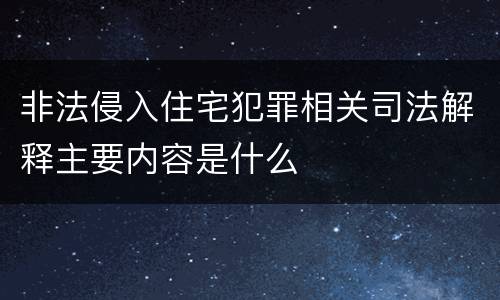 非法侵入住宅犯罪相关司法解释主要内容是什么