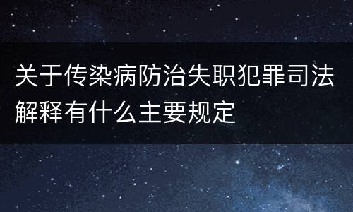 关于传染病防治失职犯罪司法解释有什么主要规定