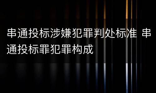 串通投标涉嫌犯罪判处标准 串通投标罪犯罪构成