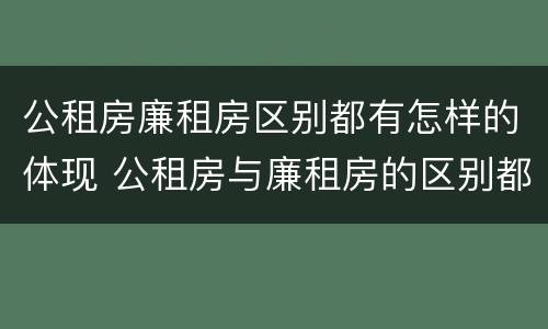 公租房和廉租房的区别如下:1、概念的差异公租房全称公共租赁住房是解决新就业职工等夹心层群体住房困难的一个产品。它由政府投资或政府提供政策支持的其他投资主体属政府或公共机构所有通过限定户型面积、供应对象