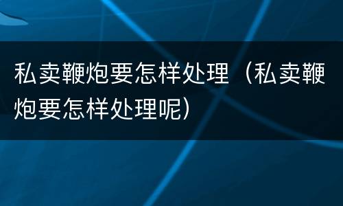私卖鞭炮要怎样处理(私卖鞭炮要怎样处理呢)