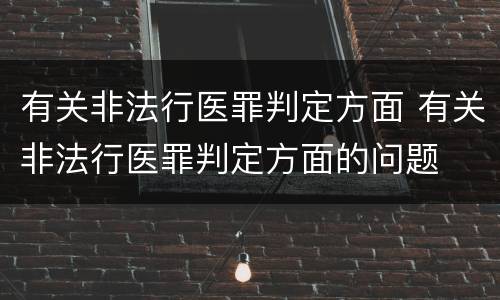 有关非法行医罪判定方面 有关非法行医罪判定方面的问题