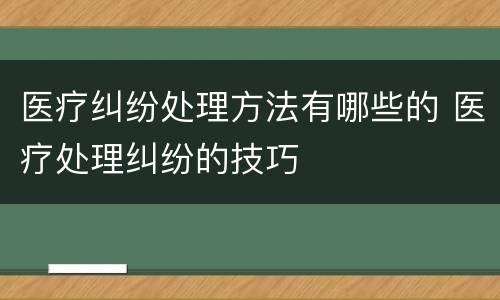 医疗纠纷处理方法有哪些的 医疗处理纠纷的技巧