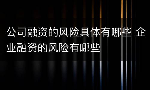 公司融资的风险具体有哪些 企业融资的风险有哪些