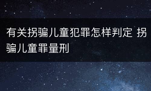 有关拐骗儿童犯罪怎样判定 拐骗儿童罪量刑
