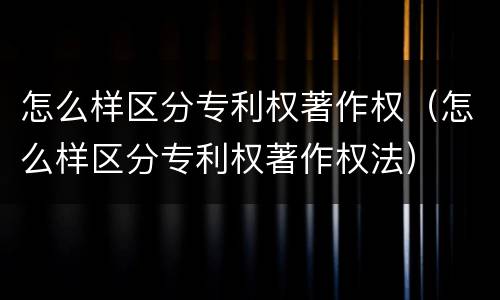 怎么样区分专利权著作权(怎么样区分专利权著作权法)