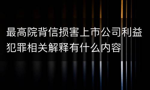 最高院背信损害上市公司利益犯罪相关解释有什么内容