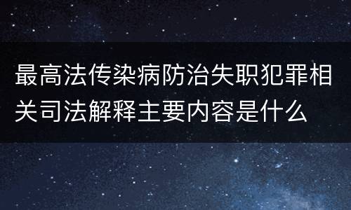 最高法传染病防治失职犯罪相关司法解释主要内容是什么