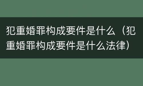 犯重婚罪构成要件是什么(犯重婚罪构成要件是什么法律)
