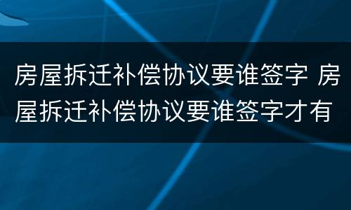 房屋拆迁补偿协议要谁签字 房屋拆迁补偿协议要谁签字才有效