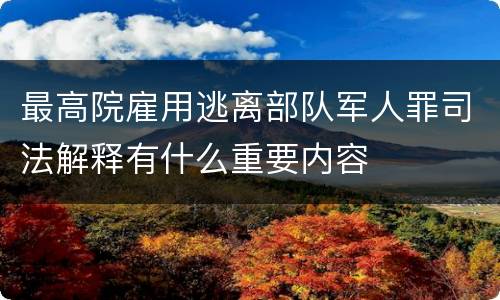 最高院雇用逃离部队军人罪司法解释有什么重要内容