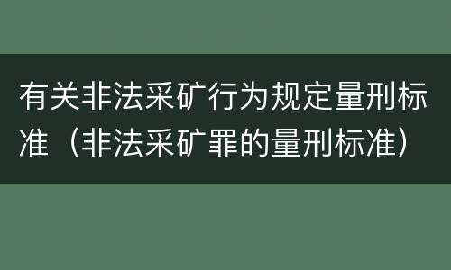 有关非法采矿行为规定量刑标准(非法采矿罪的量刑标准)