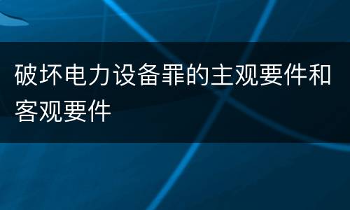 客体要件。本罪所侵犯的客体属于公共安全。犯罪对象是正在使用中的电力设备。所谓电力设备,是指用于发电、供电、输电、变电的各种设备,包括火力发电厂的热力设备,如锅炉、汽轮机、燃气机等;水力发电厂的水轮机和