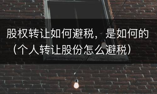 股权转让如何避税,是如何的(个人转让股份怎么避税)