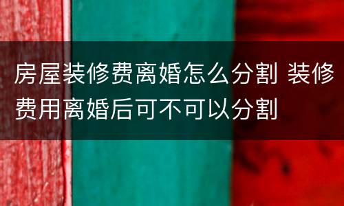 房屋装修费离婚怎么分割 装修费用离婚后可不可以分割