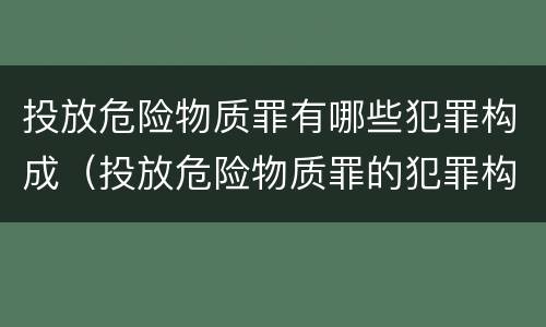 投放危险物质罪有哪些犯罪构成(投放危险物质罪的犯罪构成)