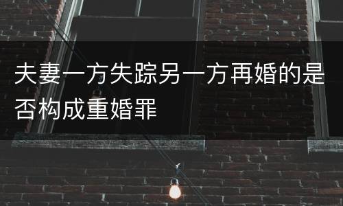 夫妻一方失踪另一方再婚的是否构成重婚罪