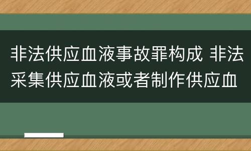 非法供应血液事故罪构成 非法采集供应血液或者制作供应血液制品罪的刑事责任