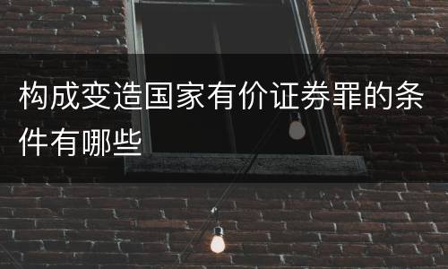 1、客体要件。本罪所侵害的客体是国家有关证券的管理制度。2、客观要件。本罪在客观方面表现为伪造、变造国库券或者国家发行的其他有价证券数额较大的行为。3、主体要件。本罪的主体为一般主体,达到刑事责任年龄