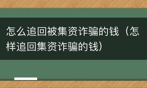 怎么追回被集资诈骗的钱(怎样追回集资诈骗的钱)