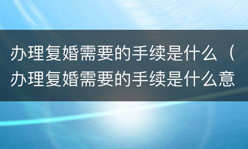 办理复婚需要的手续是什么(办理复婚需要的手续是什么意思)