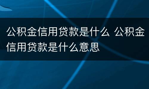 公积金信用贷款是什么 公积金信用贷款是什么意思