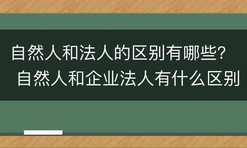 自然人和法人的区别有哪些? 自然人和企业法人有什么区别