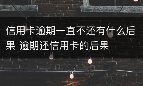 信用卡逾期一直不还的后果有:产生信用卡滞纳金、逾期利息、诉讼费用等。还会留下不良信用记录,将影响持卡人的就学、择业和贷款等。若存在恶意拖欠信用卡不还的情况,那么还可能涉嫌构成信用卡诈骗罪,受到刑事处罚