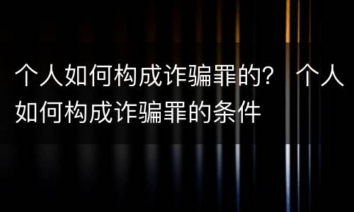 个人如何构成诈骗罪的? 个人如何构成诈骗罪的条件