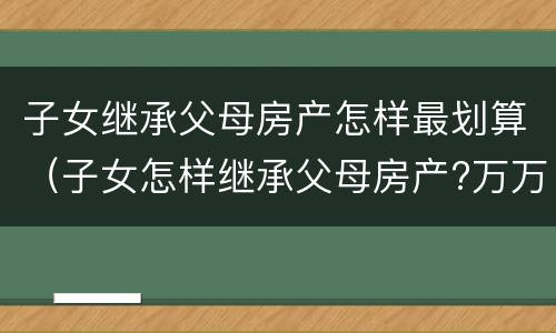 子女继承父母房产怎样最划算(子女怎样继承父母房产?万万没想到,这招最省钱!)