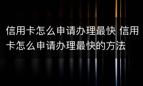 信用卡怎么申请办理最快 信用卡怎么申请办理最快的方法