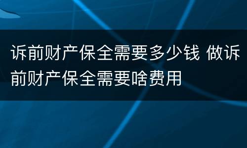 诉前财产保全需要多少钱 做诉前财产保全需要啥费用