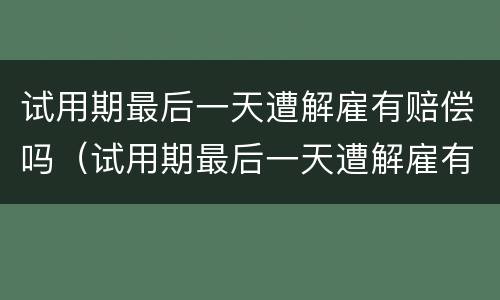 试用期最后一天遭解雇不一定有赔偿,如果在试用期被用人单位证实不符合录用的条件,可以不支付劳动者赔偿金,如果是用人单位非法辞退劳动者的,劳动者可以要求用人单位支付一定的赔偿金。