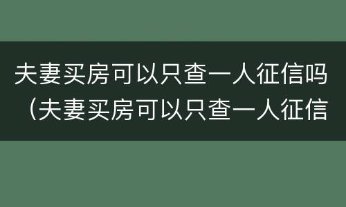 夫妻买房可以只查一人征信吗(夫妻买房可以只查一人征信吗,以一个人贷款可以吗)