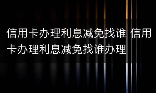 信用卡办理利息减免找谁 信用卡办理利息减免找谁办理