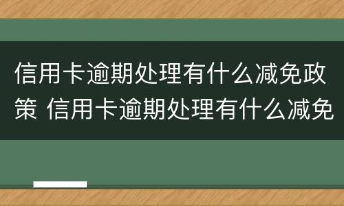 信用卡逾期处理有什么减免政策 信用卡逾期处理有什么减免政策嘛