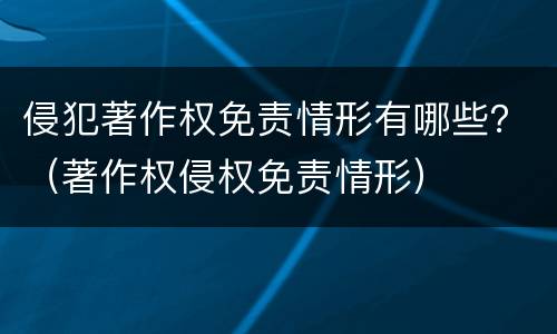 侵犯著作权免责情形包括被侵权人也有过错的情况,侵权行为构成的损害时受害人故意造成的情况,侵权行为造成的损害是第三人构成的情况,因为不可抗力造成了他人的损害的情况,因为正当防卫造成损害等。