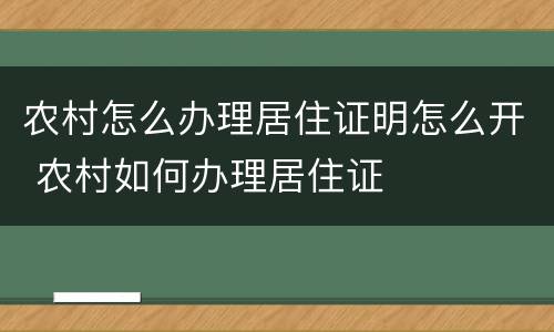 农村怎么办理居住证明怎么开 农村如何办理居住证