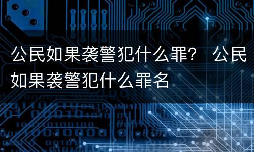 公民如果袭警犯什么罪? 公民如果袭警犯什么罪名