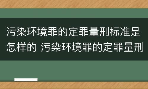 污染环境罪的定罪量刑标准是怎样的 污染环境罪的定罪量刑标准是怎样的呢
