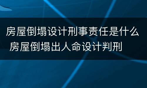 房屋倒塌设计刑事责任是什么 房屋倒塌出人命设计判刑