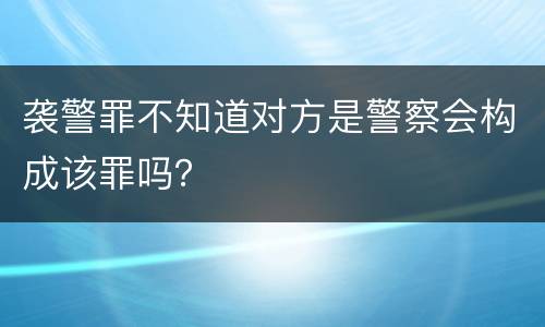 袭警罪不知道对方是警察不会构成该罪,因为从主观故意上来说的话,必须是故意的。根据我们国家法律当中的规定,从主观态度上来说的话,是明明知道是人民警察的情况之下,仍然对其实施暴力等相关的行为。