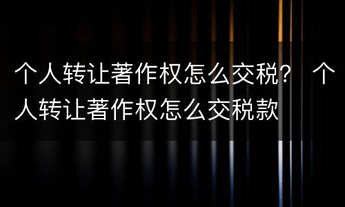 个人转让著作权怎么交税? 个人转让著作权怎么交税款