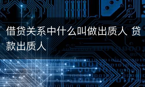 在借贷关系中出质人就是提供财产做质押的人,根据《民法典》规定,向别人借钱时,借款人或者第三人可以将动产质押给债权人,如果到期没有履行应尽义务,债权人作为质权人,可以就质押的动产优先受偿。质押和抵押,都